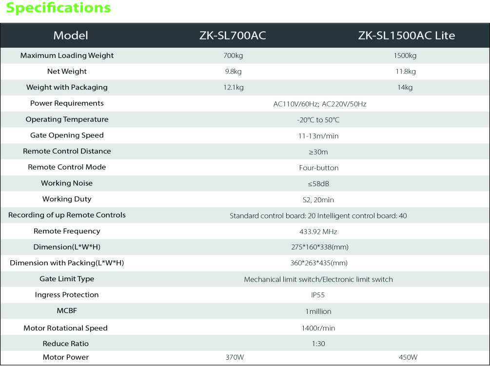 • ZK-SL700AC/1500AC lite Motorized Sliding Gate Opener meets the highest standards in safety.