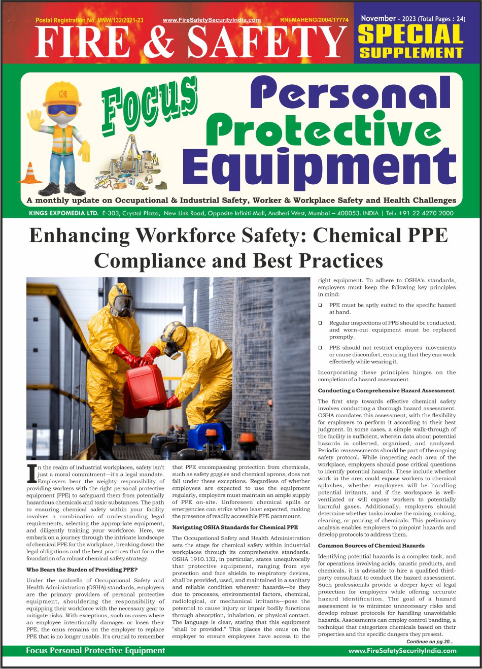 Publication House publishing 5 monthly magazines on Fire & Safety, Occupational Workmen Safety and Industrial Safety, Security and Surveillance including Cyber Security